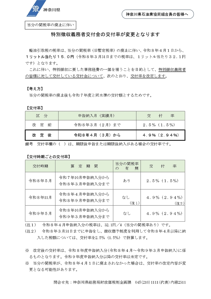 特別徴収義務者交付金の交付率が変更となります