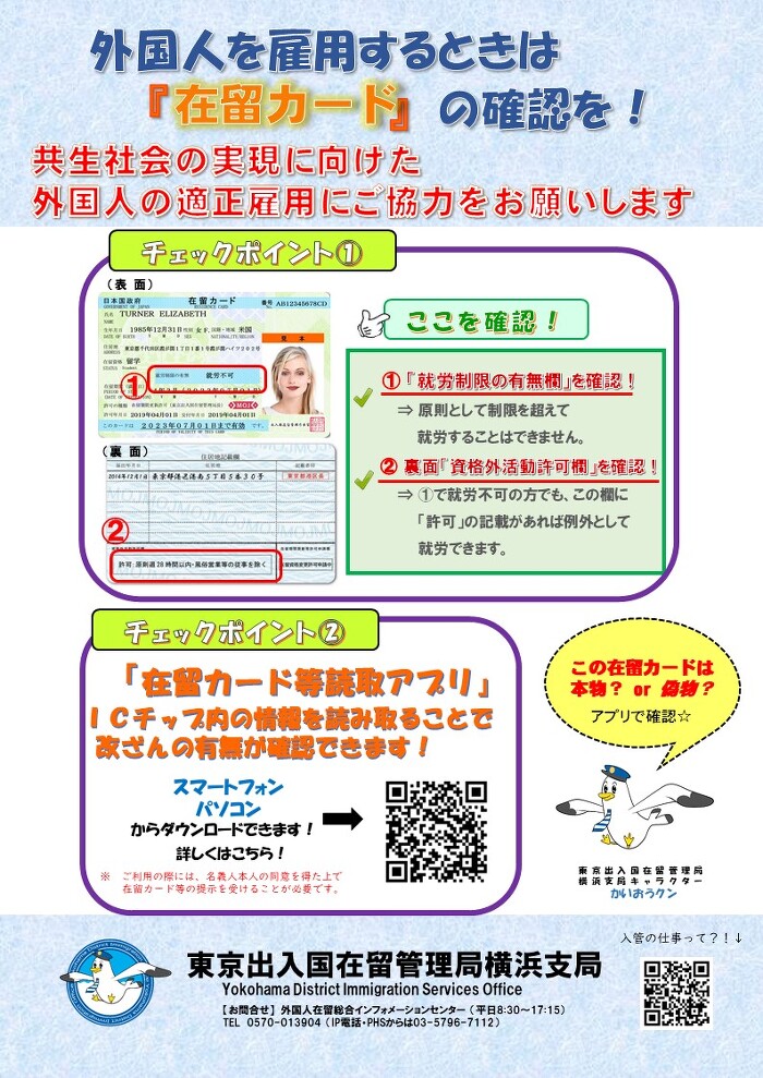 外国人を雇用する際の不法就労防止に関するリーフレットを掲載しました。不法就労させた場合には、事業主も処罰の対象となるケースもあります。
