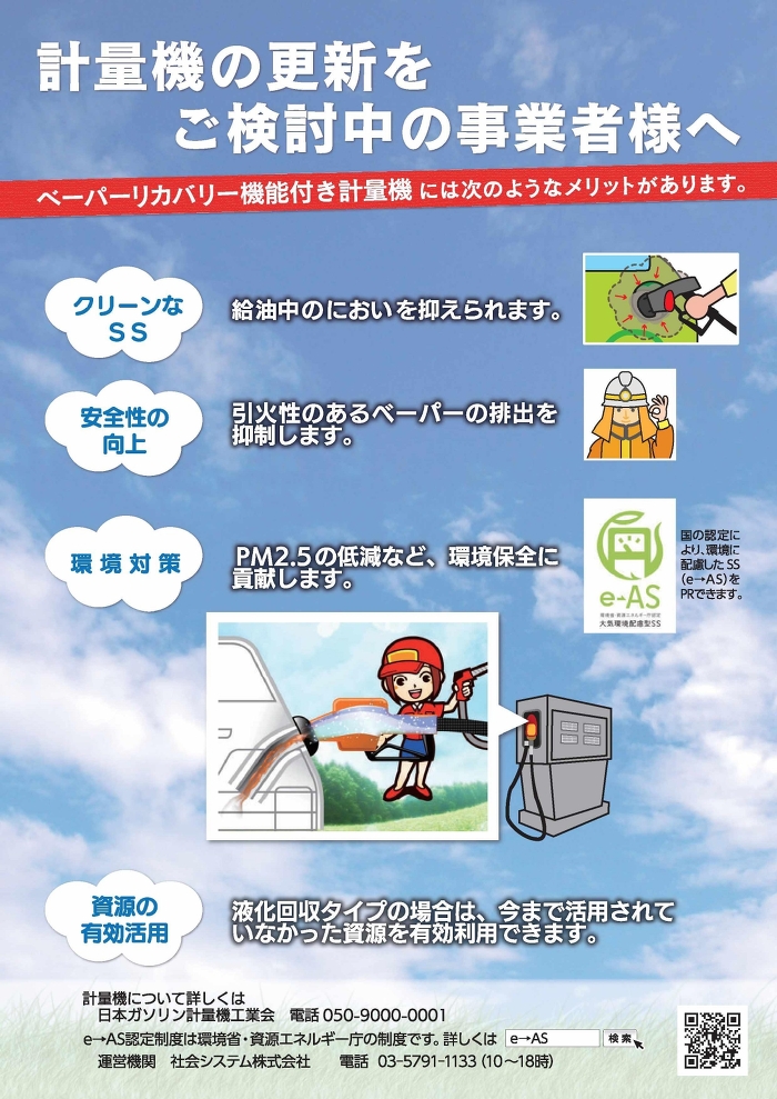 ガソリンベーパー回収機能付き計量機の更新に関するリーフレットを掲載しました。計量機の更新を検討される場合には、補助金の対象となるケースもありますので組合までご連絡下さい。